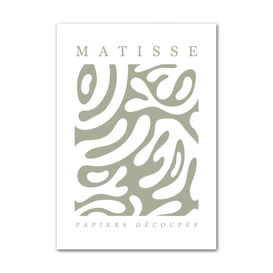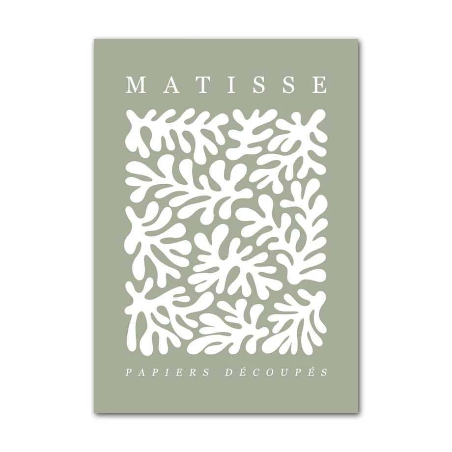 Canvas print with white leaf pattern and 'Matisse' text on a light green background
